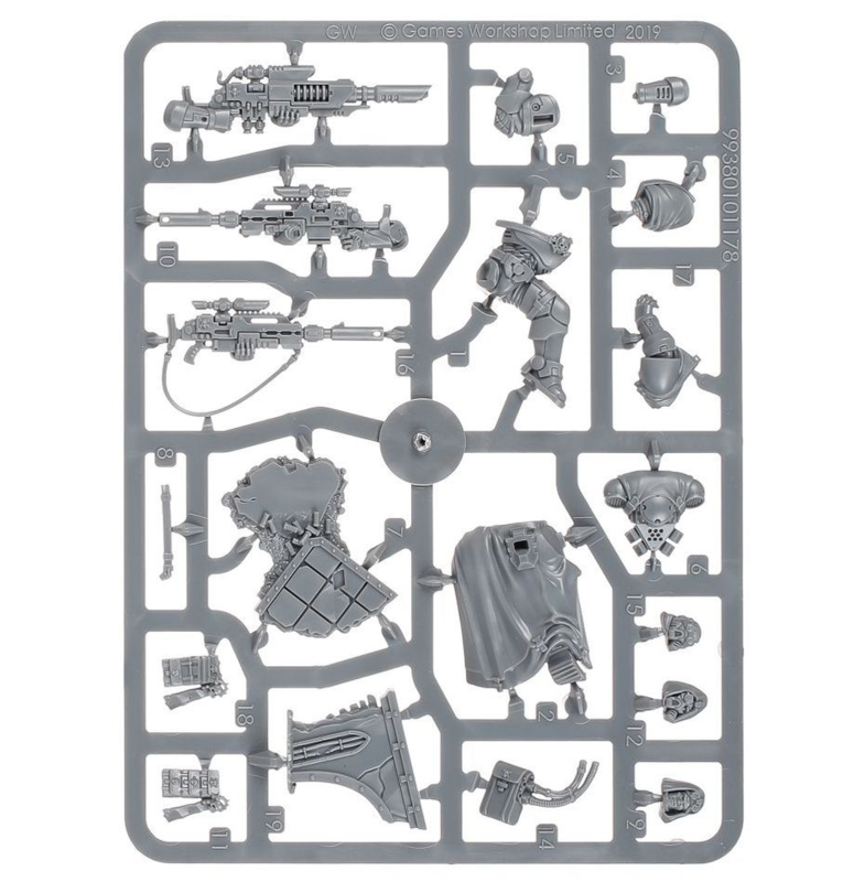 Each model in this squad can be armed either with a las fusil, which is perfect for taking out the toughest targets, or a bolt sniper rifle, which provides a choice of ammunition to suit any situation. The Sergeant can also be armed with an instigator bolt carbine. All three models can be assembled with or without helmets and the kit comes with a number of optional parts allowing you to individualise the unit.