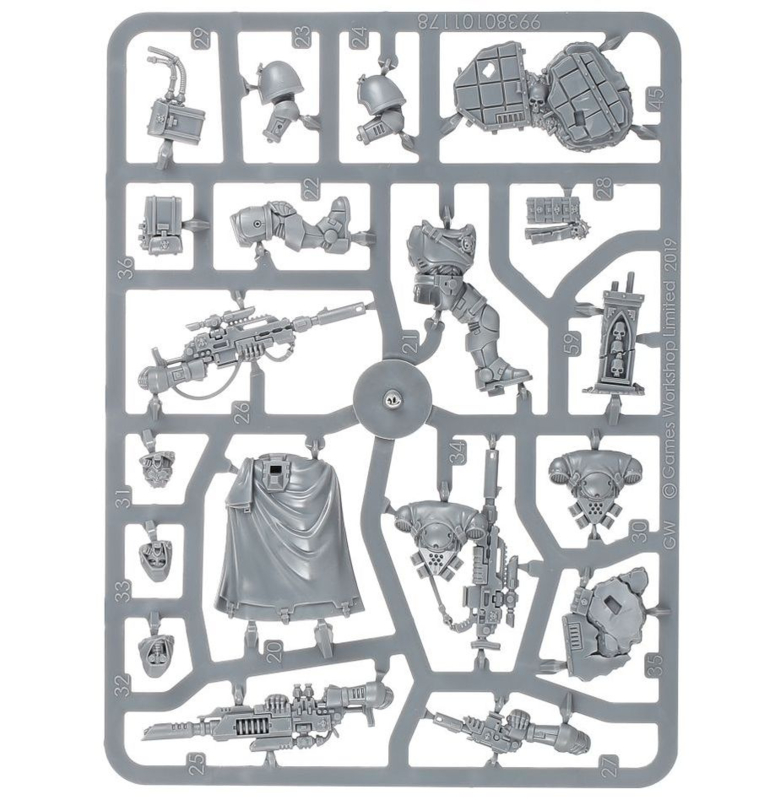 The plastic kit is made up of 60 components and makes three Eliminators. Each model is supplied with a Citadel 40mm Round base. The set also includes a Primaris Space Marines Infantry transfer sheet.