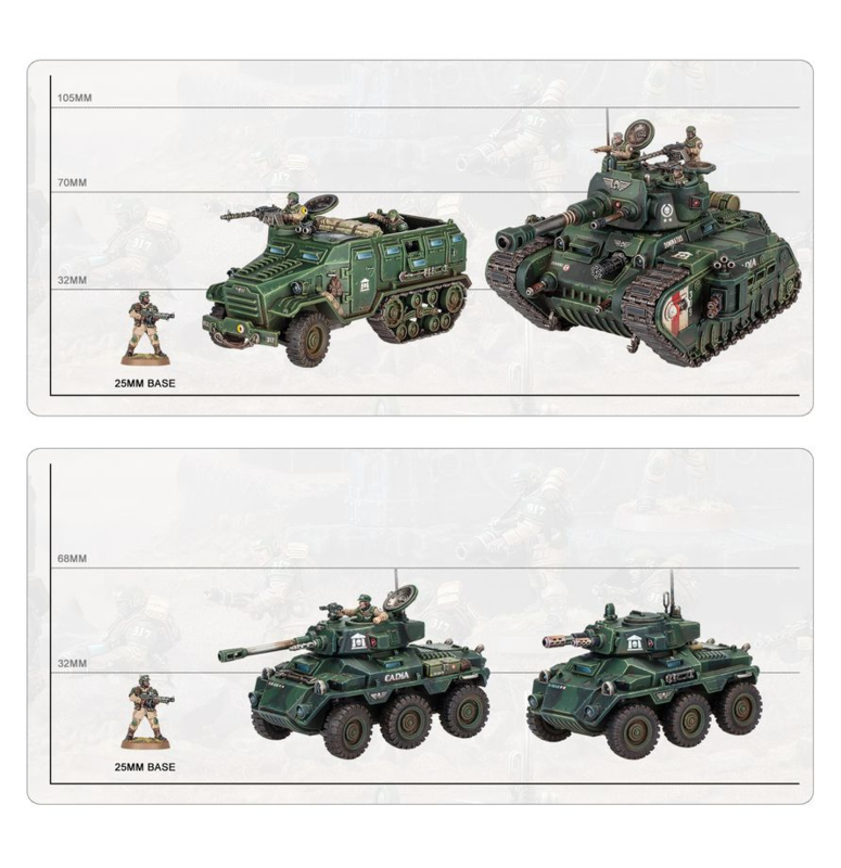 The rattle of tanks and tracks, and the hammering of gunfire, herald the advance of an Astra Militarum armoured infantry division. These forces are well-suited to aggressively seizing strategic objectives, reinforcing buckling lines, responding to enemy attacks, and capitalising on strategic gains.